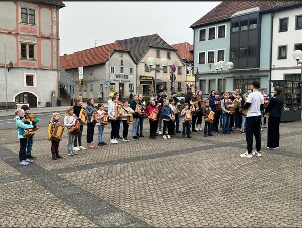 Am Gründonnerstag schwiegen mit dem Gloria die Orgel und Glocken. Damit riefen die Ratscher oder Rumpler dreimal am Tag zu den Gebetszeiten mit althergebrachten Liedtexten und ihren im Takt angeschlagenen Holzinstrumente. Zum Gründonnerstag gehört aber auch die Fußwaschung, die Pfarrer Pater Joe vornahm. Dem Gottesdienst am Gründonnerstag schlossen sich Gebetsstunden von Frauenbund und Kolpingsfamilie an, sowie die ökumenische Gethsemanenacht. Dabei erinnerte man an die Nacht Jesu am Ölberg und seine Leidensgeschichte. Von der Stadtpfarrkirche ging es unter anderem zum Juliusspital, wo man im Gewölbekeller an das letzte Abendmahl erinnerte, weiter dann zur evangelischen Kirche und schließlich zum Friedhof. Das Thema in diesem Jahr: beWEGt, abWEGig, auf dem „WEG“, aus WEG, fluchtWeg und Ausweglos.