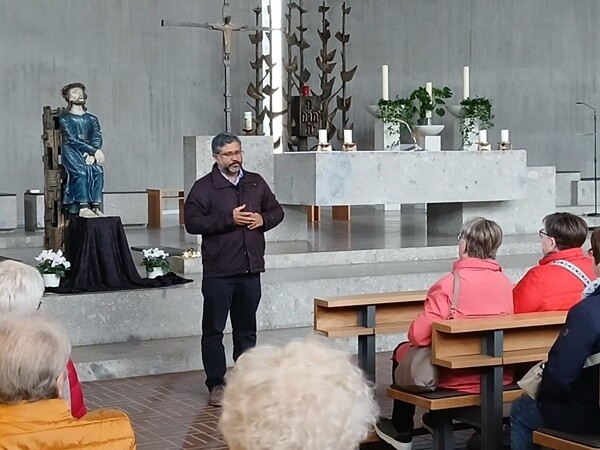 Im August 2024 hat Pater Joe Jovilla Kurian die Pfarreiengemeinschaft „Grabfeldbrücke“ in Bad Königshofen verlassen. Drei Jahre war er hier Pfarrer und wurde sehr geschätzt. Heute arbeitet er in der Pfarrei von Waldershof mit. Der katholische Seniorenkreis Bad Königshofen hatte nun zu einer Fahrt in den neuen Wirkungsort des beliebten Geistlichen eingeladen und hatte damit Pater Joe überrascht. „Ich wusste ja von gar nichts und habe mich wirklich sehr gefreut,“ sagte er den Bad Königshofener.
