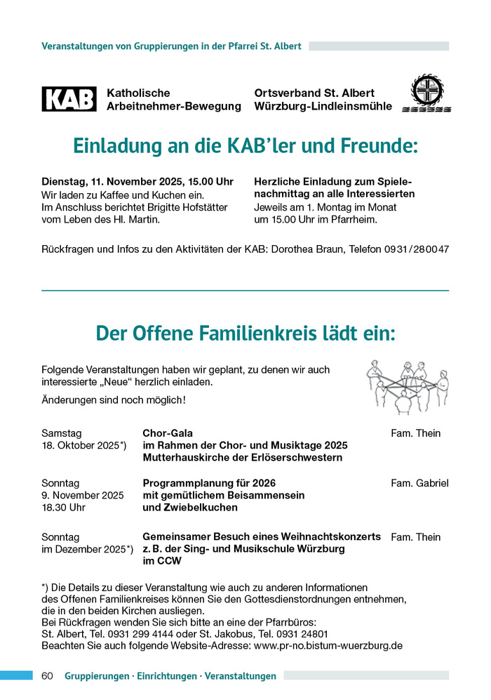 Rückfragen und Infos zu den Aktivitäten der KAB: Dorothea Braun, Telefon 0931/280047